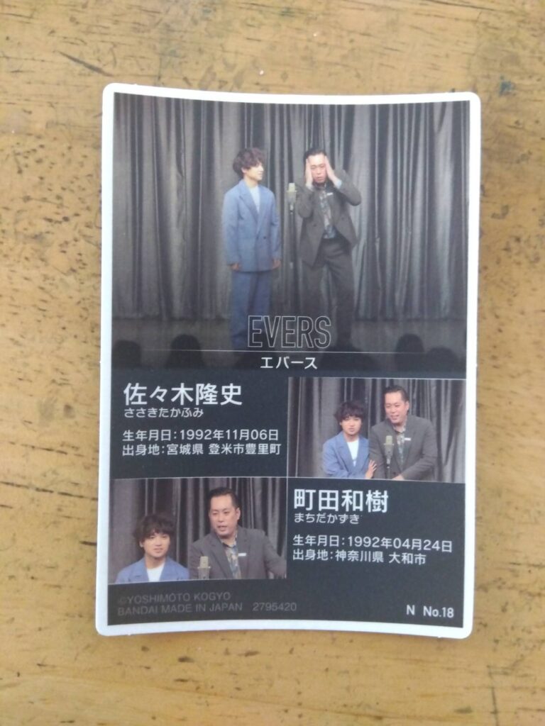 ウエハース2枚の他に、漫才コンビのトレカが入ってます!